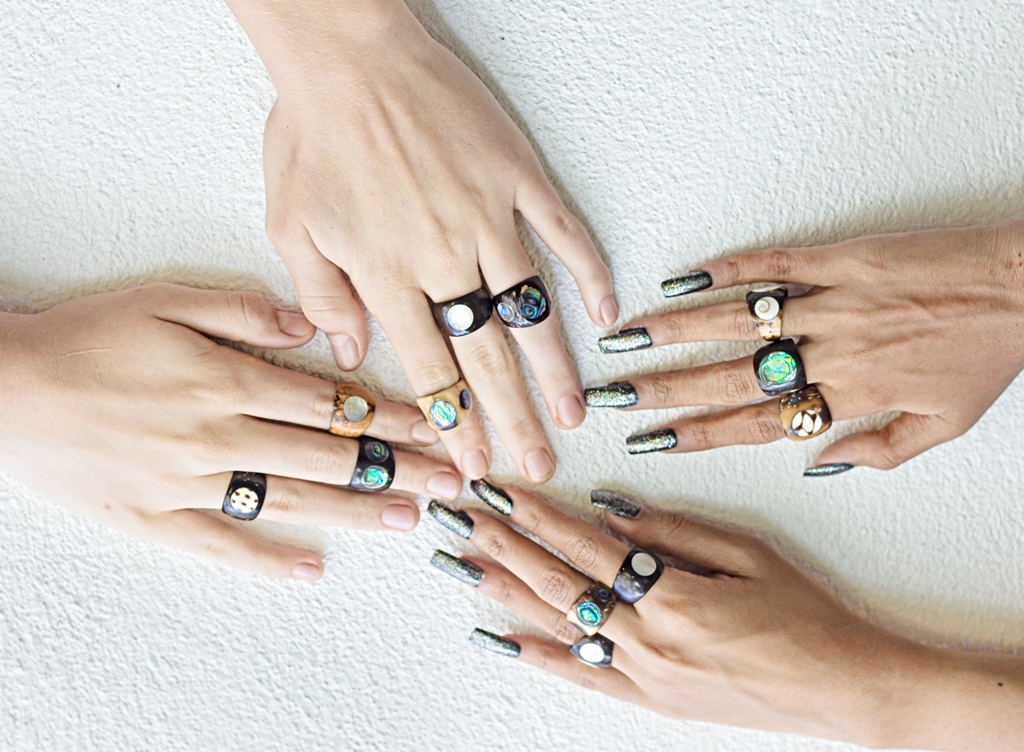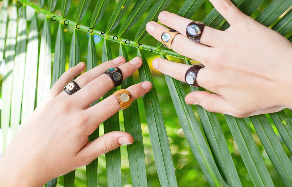 Handmade especially out of real coconut shell, 100% nature! Ā The coconut we used in our production of the ring palm nuts. The Pati coconut, by far, has the most variation in colour, ranging from light beige to dark brown. Never displaying one solid colour, even the darkest of Pati rings will reveal hints of reds and light browns. According to some makers of jewelry, after you wear the ring for a few weeks, the colours on the ring will slowly begin to change into a slightly darker colour