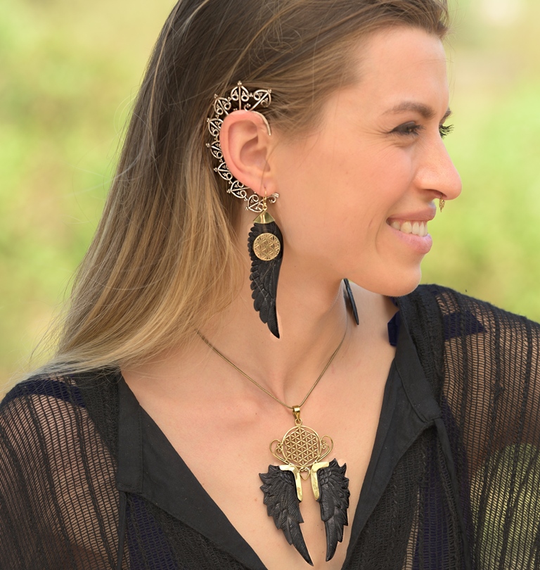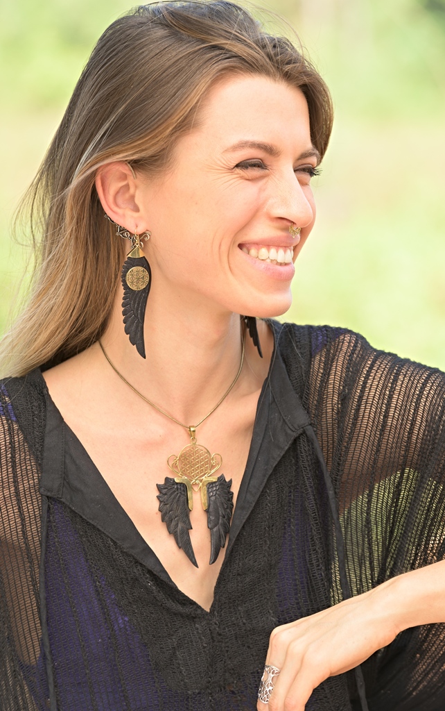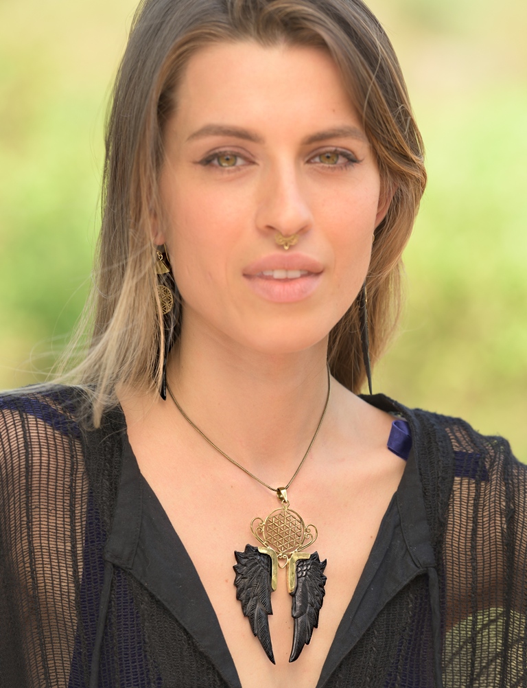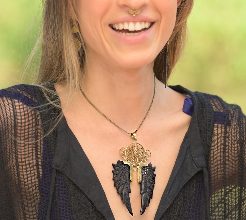 Angel Wings Pendant Carved Horn Unique Handmade Flower of Life Necklace. Jewelry with angel wings is very special as it has a personal meaning affixed to it. This symbol is related, of course, to angels, who symbolise protection, affection, and harmony.