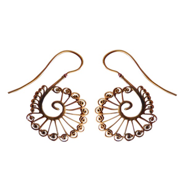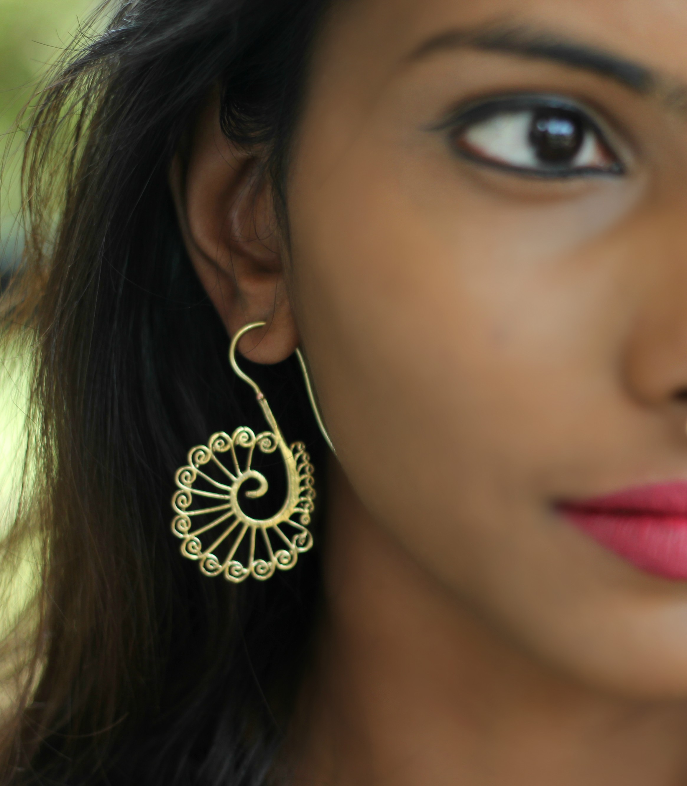 Beautiful and unique Tribal Spiral Earrings design, fine and delicate handmade. Especially crafted into unique Brass 1mm Gauged earrings that will fit naturally on the ear.