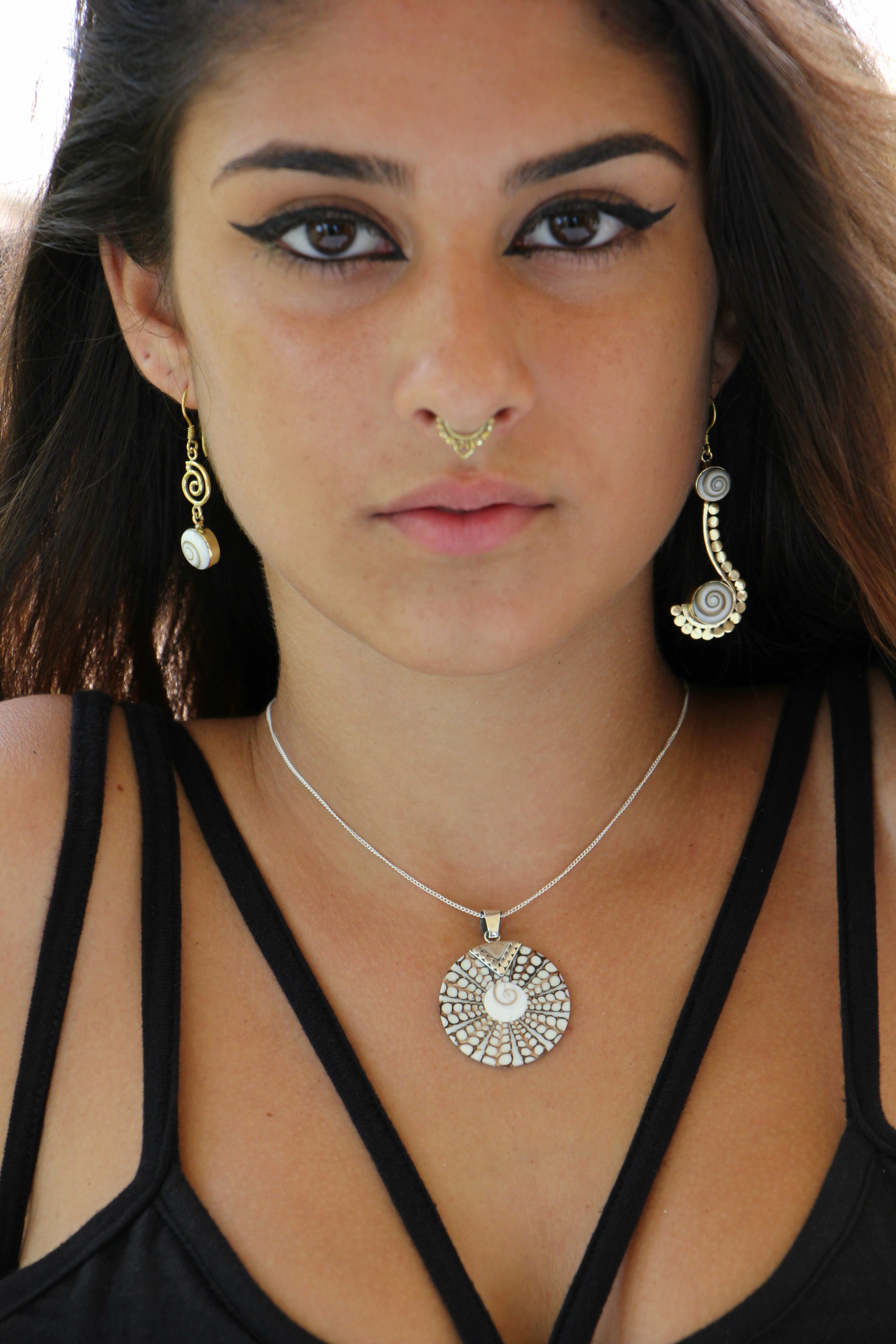 Mother Nature created this wonderful spiral pattern. Shiva’s eye is a stunning gemstone, also known as Shiva shell or sometimes Pacific Cat’s Eye. It can be discovered it on the seabed in the shallow tropical waters. This gem is actually the protective door found at the opening of the turban snail’s shell, which detaches at the end of the snail’s natural life. In India, we believe the third eye is one of the most important spiritual symbols. We believed that this shell opens the Third Eye Chakra, which transforms and also mutes the negative power. As we are spiral lovers, the Shiva eye shell is one of our most used shells.