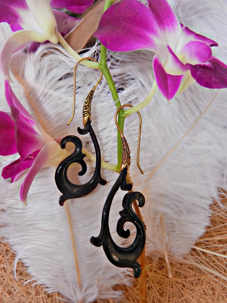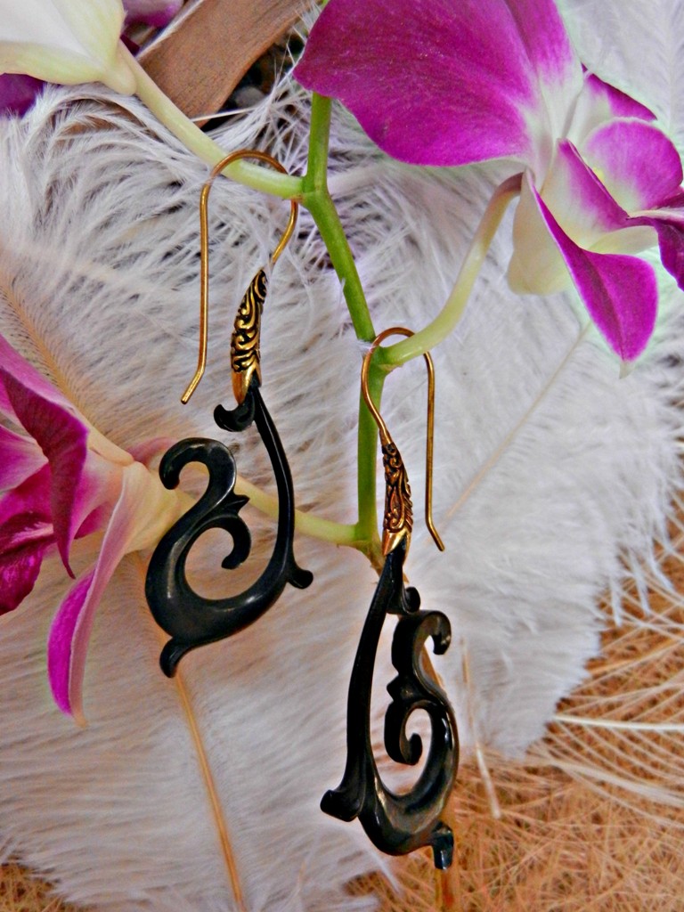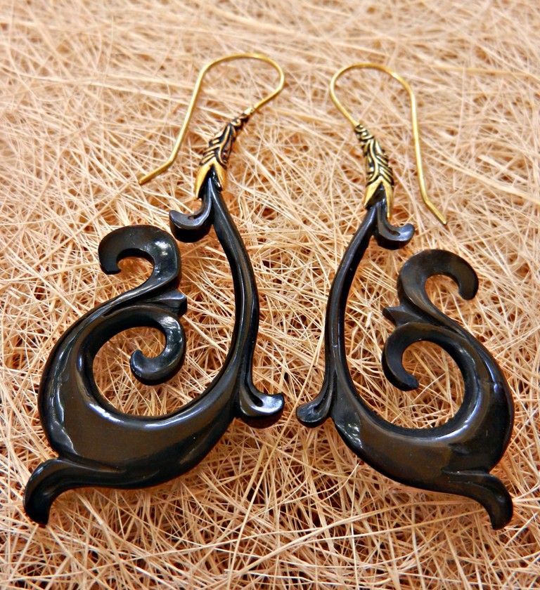 Horn Earring Tribal Carved Brass Hook Kamil is breathing new life into our unique horn/bone/shell stretchers. We have combined the unique design with the elegance of brass earrings hooks that can fit any size ear hole.
