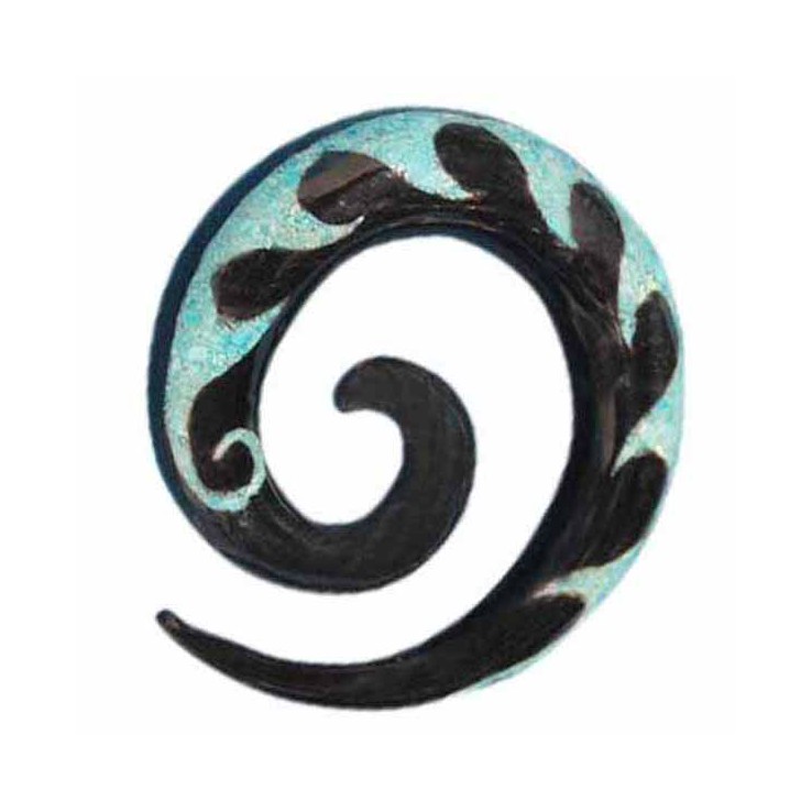 The beauty of Exotic Horn Spiral Ear Gauge Tribal design, especially hand carved and inlay with contrasting material, Turquoise. Truly is a classic design.