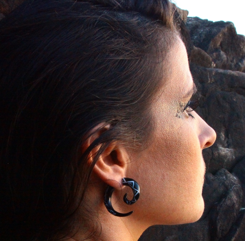 The beauty of Exotic Horn Spiral Fake Gauge Tribal designs hand carved and inlay with a contrasting material, horn and bone.