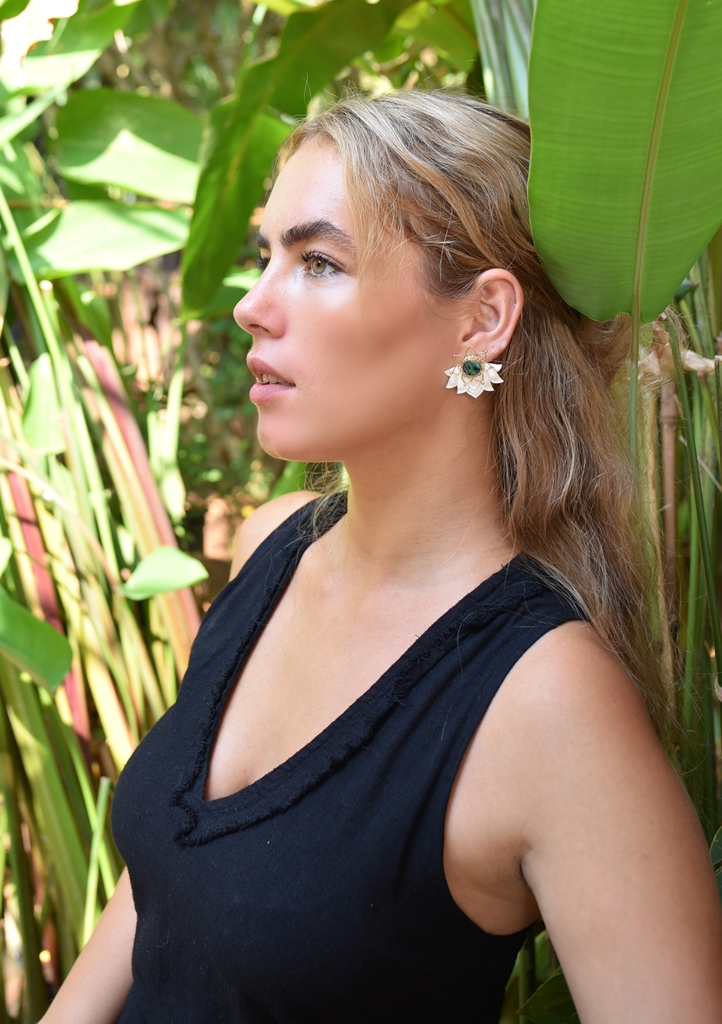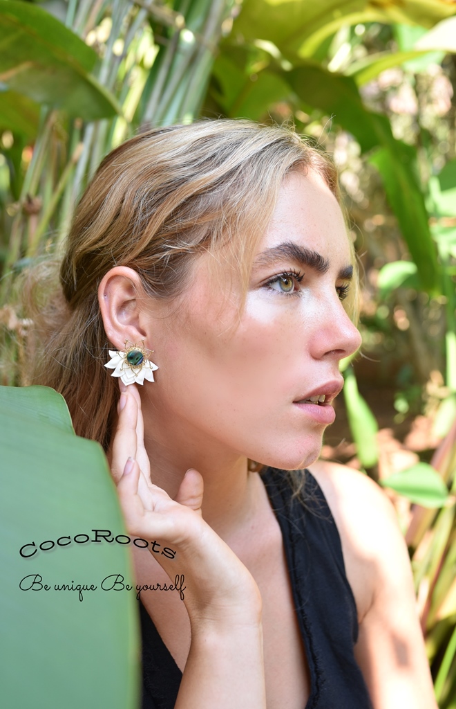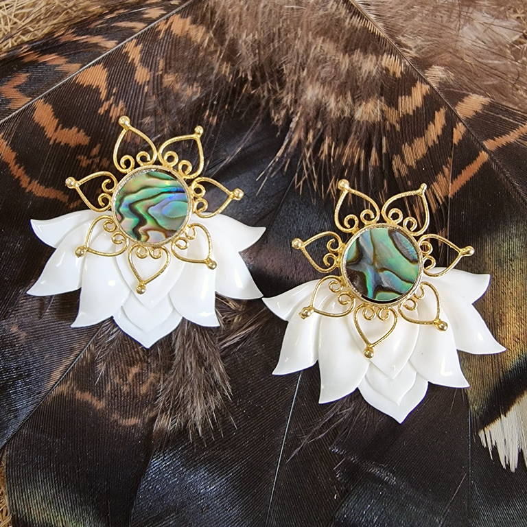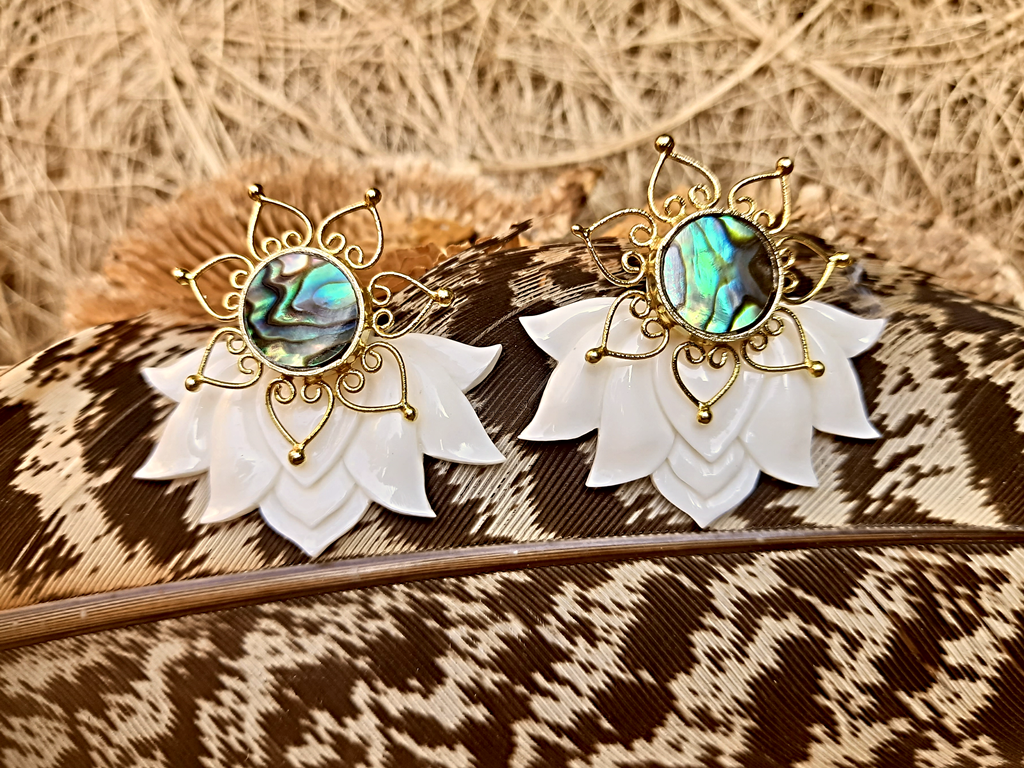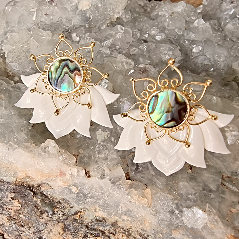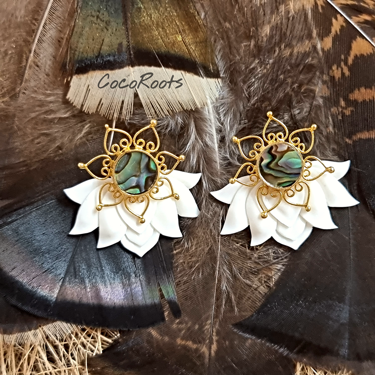 Lotus Earrings Flower Ear Unique Hand-Carved Lotus Flower with Abalone Shell Stud. Beautiful and unique Lotus Flower Earrings design, fine and delicately handmade. Especially crafted into unique earrings studs that will fit naturally on the ear.