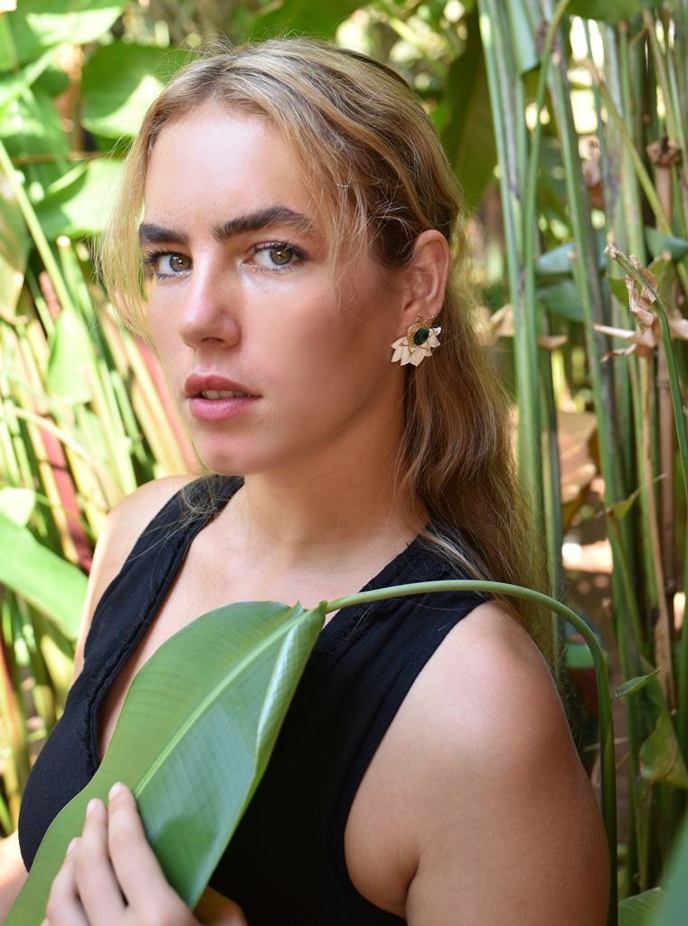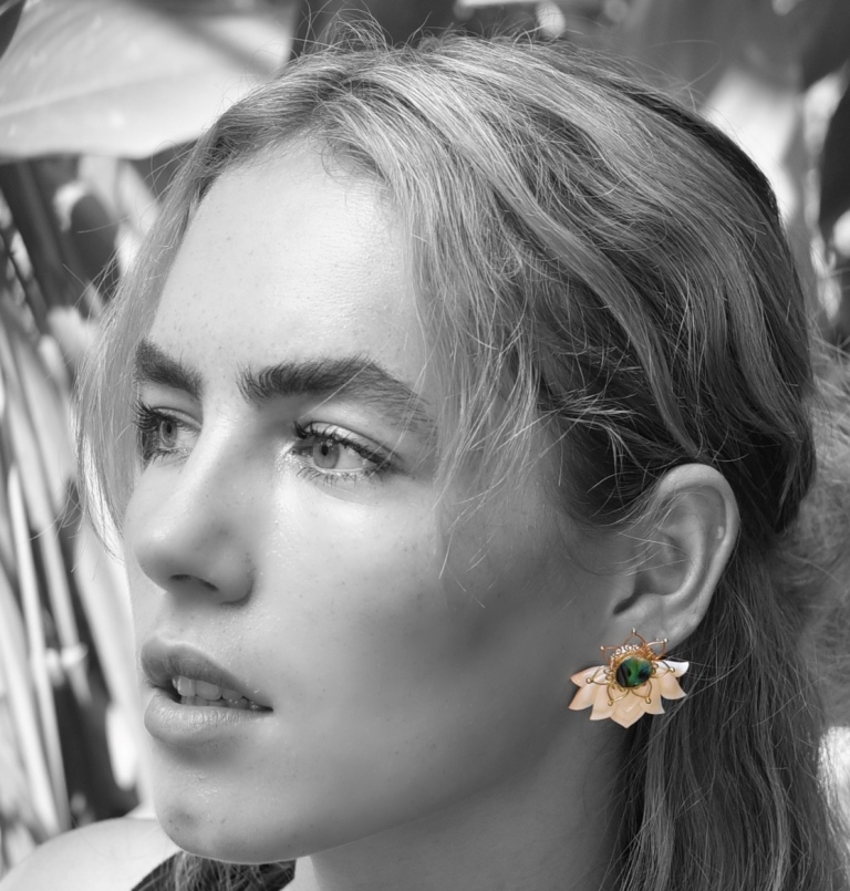 Place the stud in the front side of the ear lobe, and the lotus at the backside of the ear lobe for a funky, unique look.