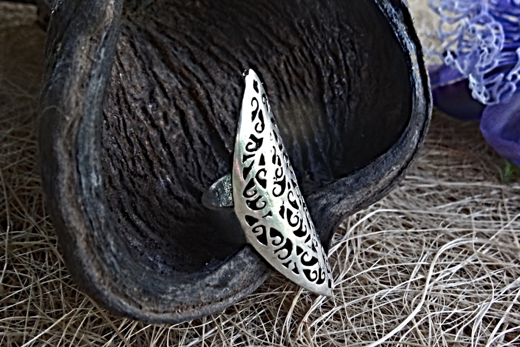 Pointed Metal Ring Exotic Tribal Silver Ornament.