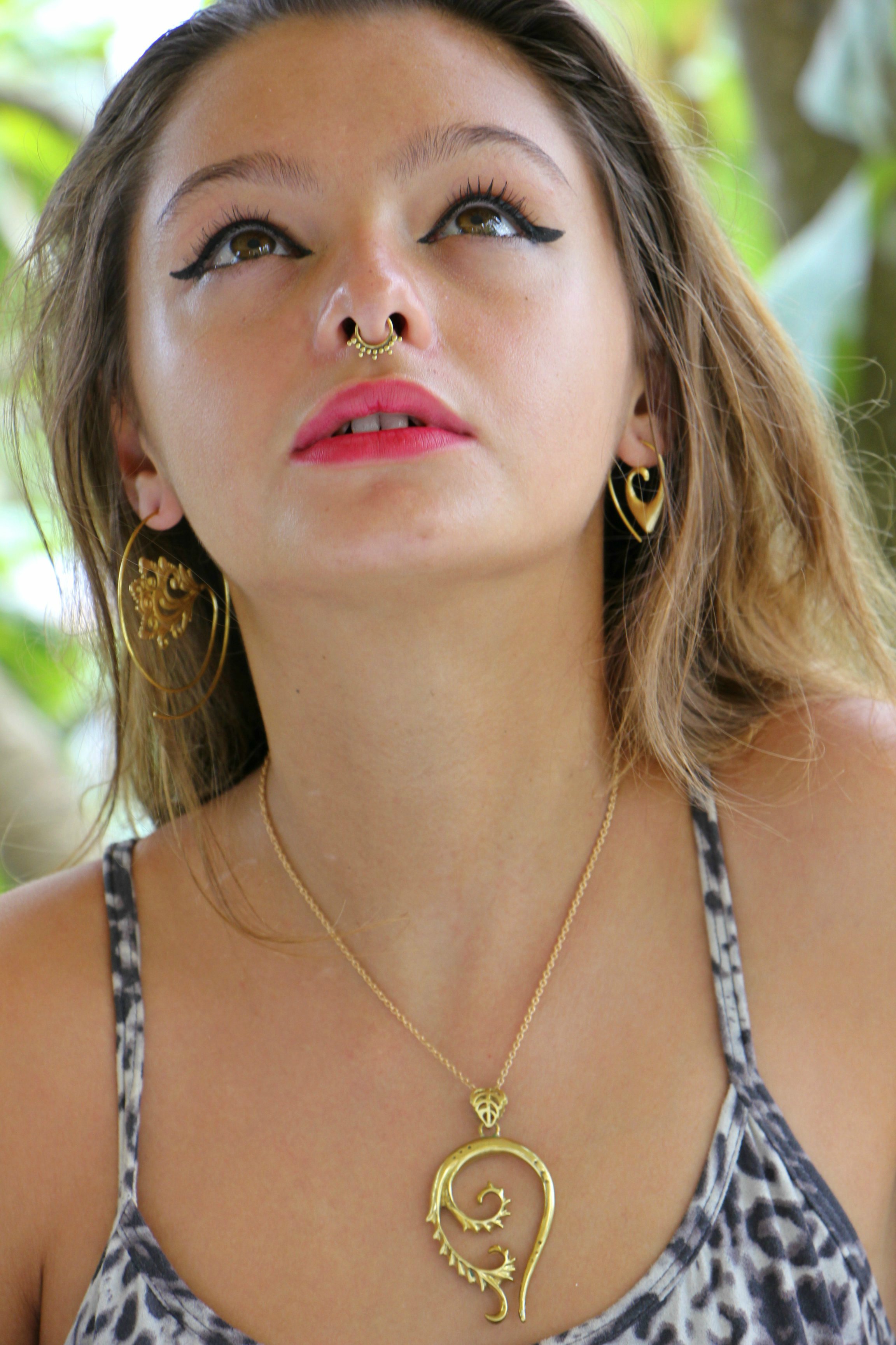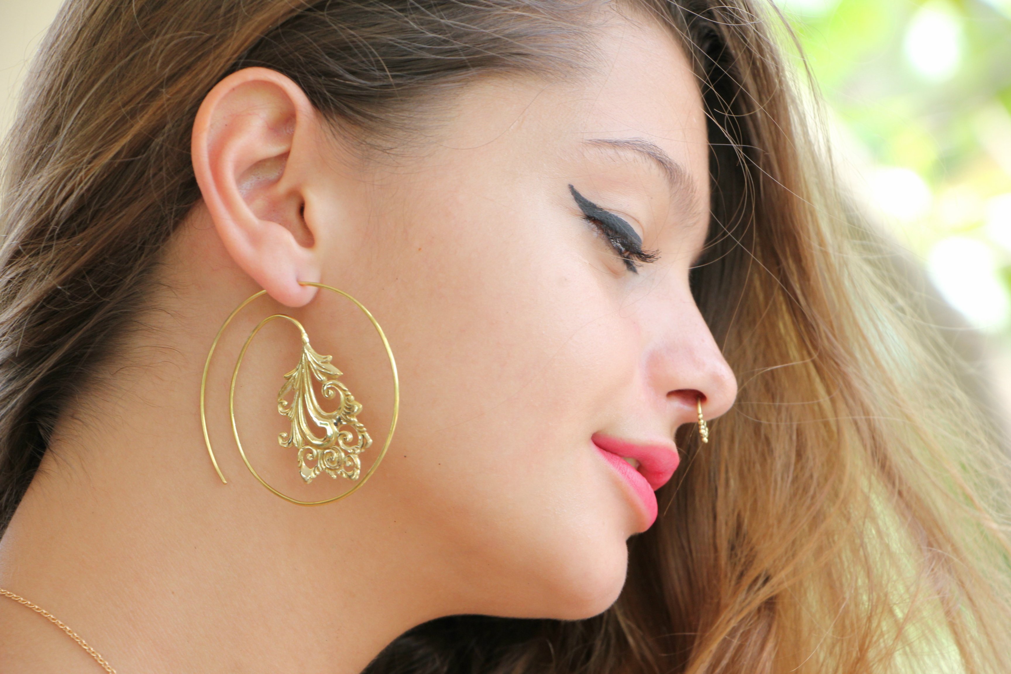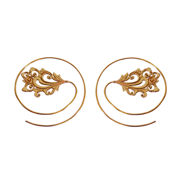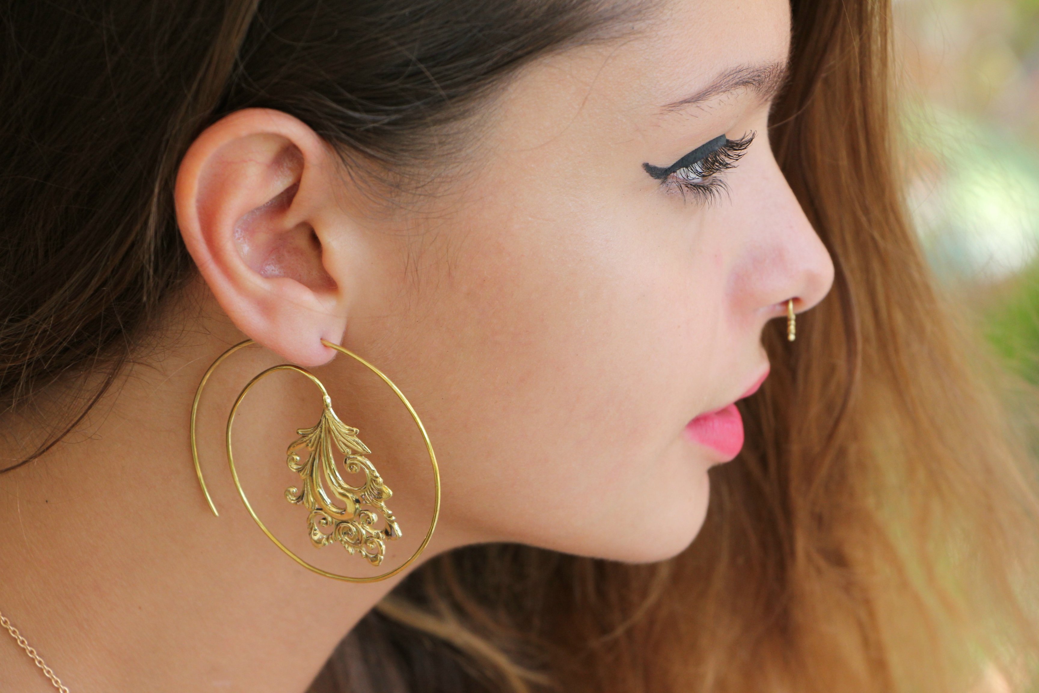 Tribal Brass Earring Spiral Hoop Handmade Unique Design. Beautiful and unique Tribal Spiral Earrings design, fine and delicate handmade. Especially crafted into unique Brass 1mm Gauged earrings that will fit naturally on the ear.