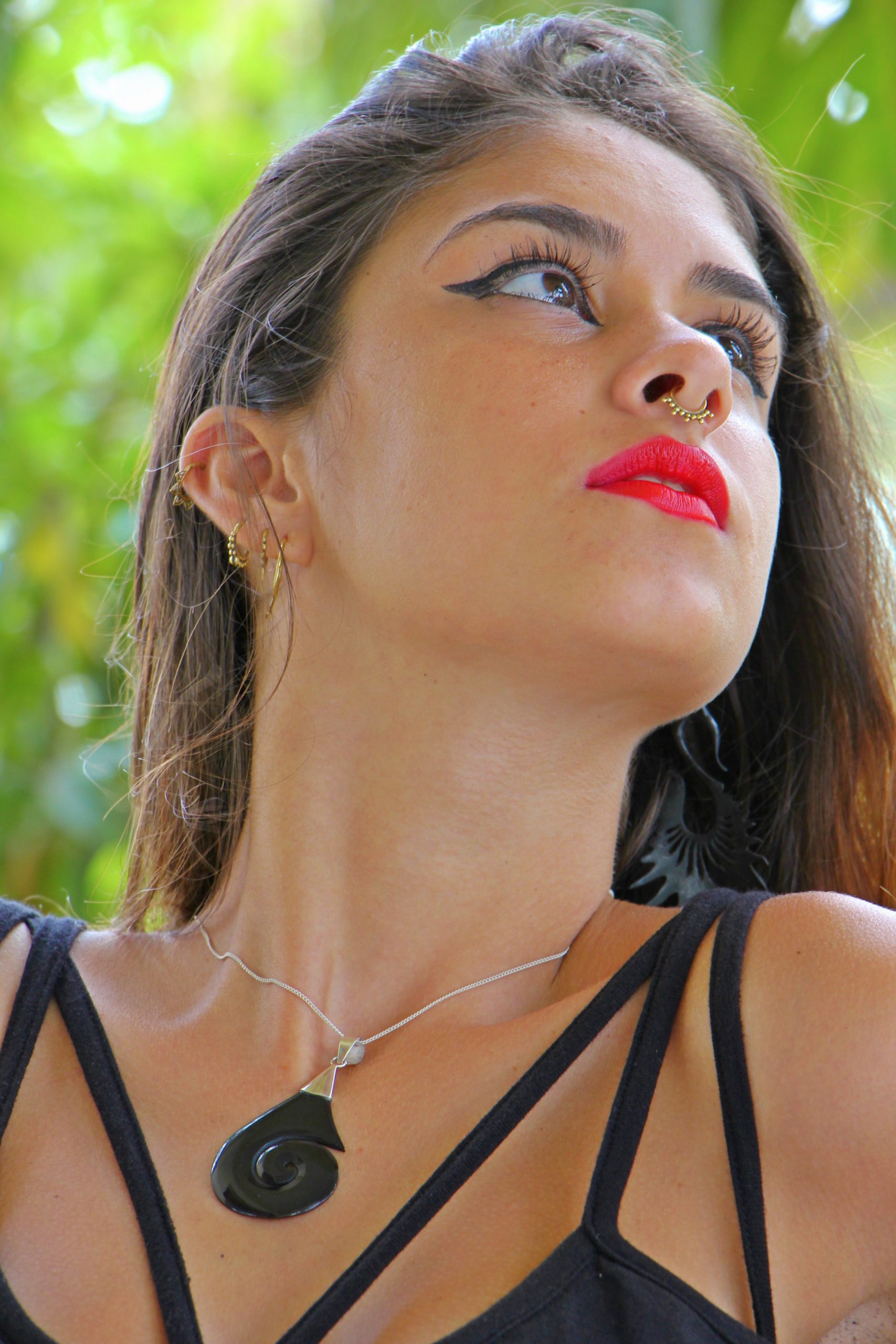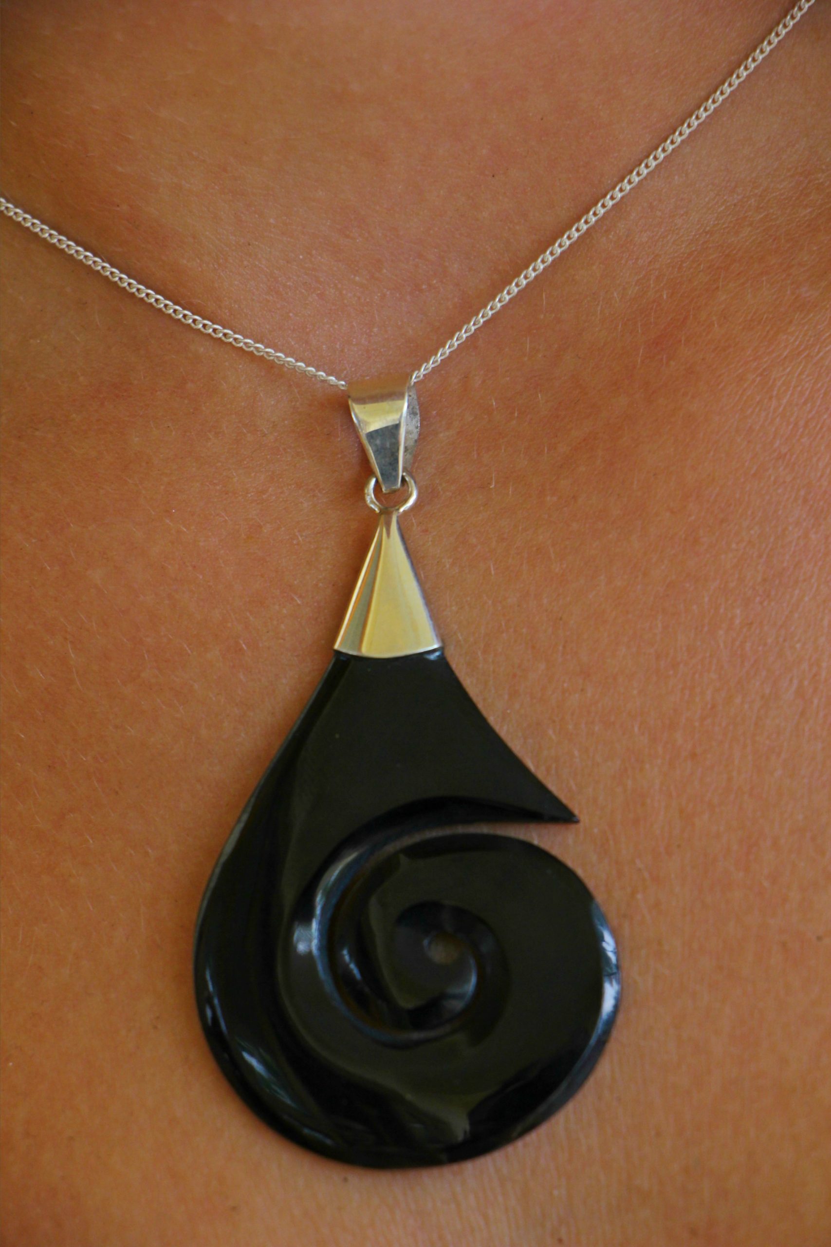 Tribal Horn Spiral 92.5 Sterling Silver Pendant crafted over thousands of years by the sea. These exotic shells especially combined with skillful 92.5 sterling silver work have been set into individual and unique shaped pendant.