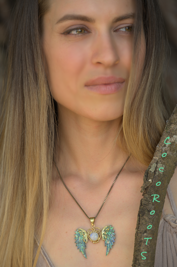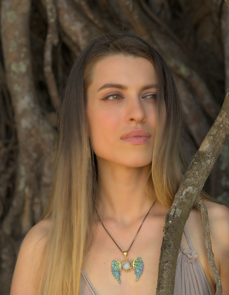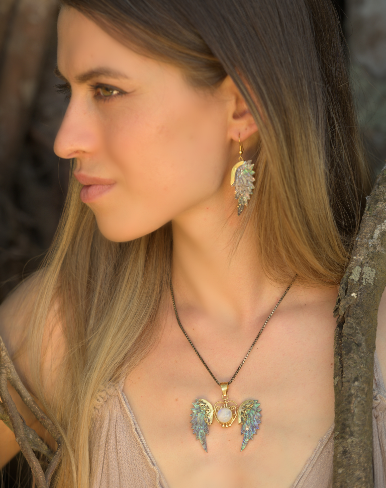 Unique Angel Wings Abalone Pendant Moonstone Jewelry